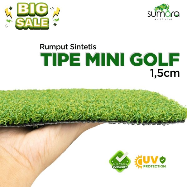 Rumput Sintetis Mini Golf 1,5 cm difokuskan untuk lapangan mini golf (sport) dirumah anda, drive pad maupun lapangan tenis outdoor.